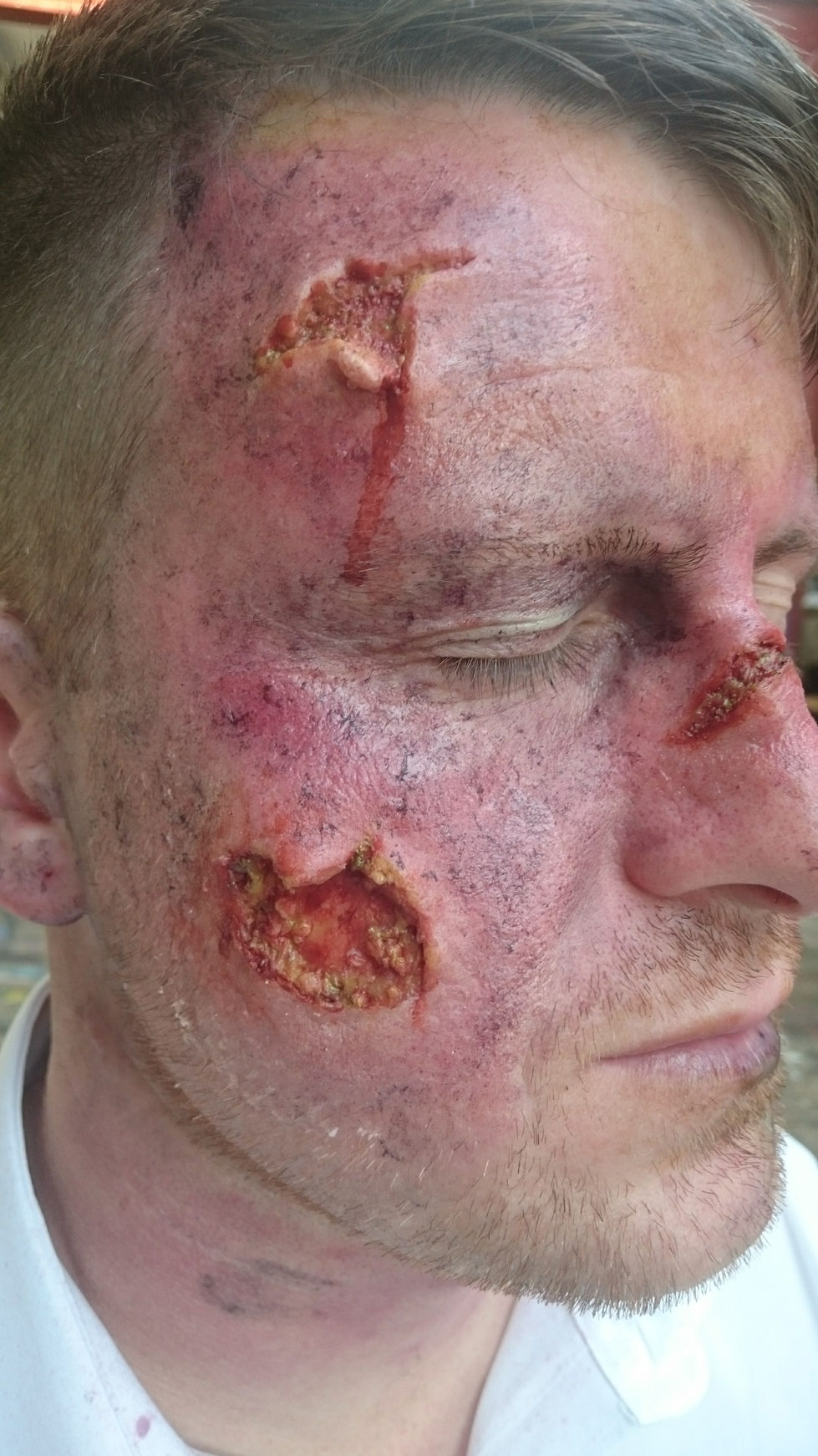 I was employed to create various special effects and prosthetics, apply them and supervise an on set assistant for a BFI and Creative England funded short film.